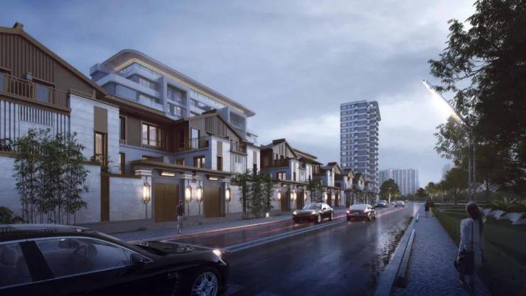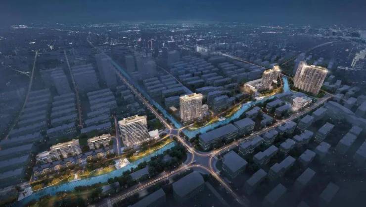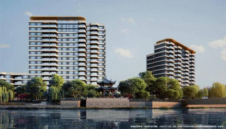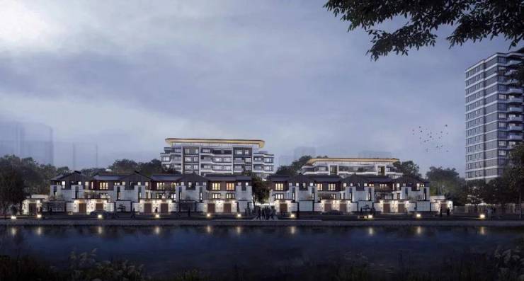而项目整体建筑布局随河蜿蜒,高低错落的建筑形态也契合了江南水乡的水韵特色。