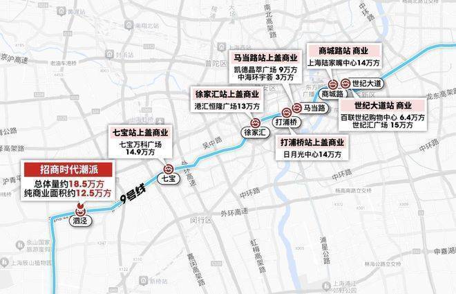 首先便是,作为9号线泗泾站新一代超级TOD,拥有着约18.5万方的商业,「招商时代潮派」与地铁商场直线仅约200米!更重要的是,它还拥有着3站七宝、6站漕河泾、9站徐家汇的强大通勤便捷度.这在全市500万能级的置业板块中,都称得上是顶尖的存在!