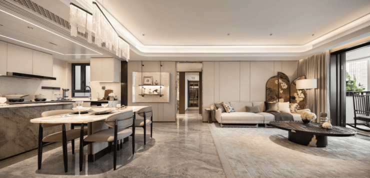 奢侈的空间感不仅体现在面积上,更在于精心的设计、优质的材料与细腻的细节.在海上·清和玺精心的设计、优质的材料以及细腻的细节,才是真正的奢侈所在.就拿通室来说,奢石、奢板、奢皮、奢镜的混合搭配,简直是一场视觉的盛宴,一站式满足了改善客群对于品质的极致追求.
