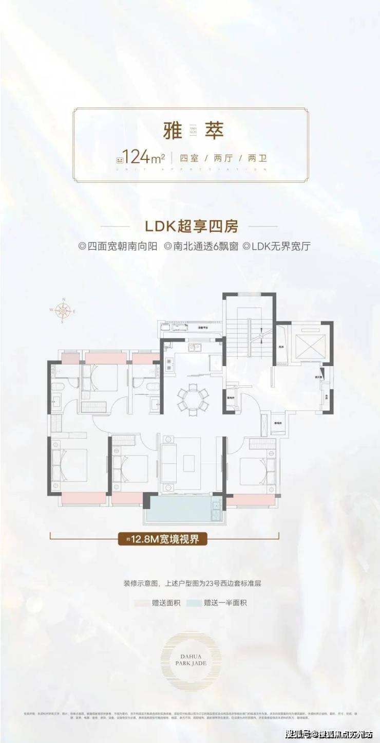 建面约124㎡的4房2卫户型,通常来说是紧凑型的户型。