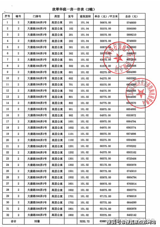 大华公园柏翠项目一房一价表▼