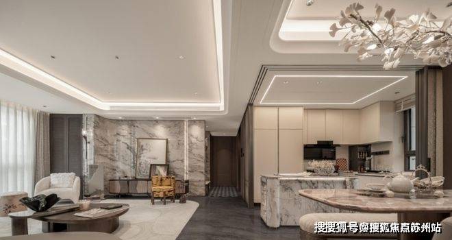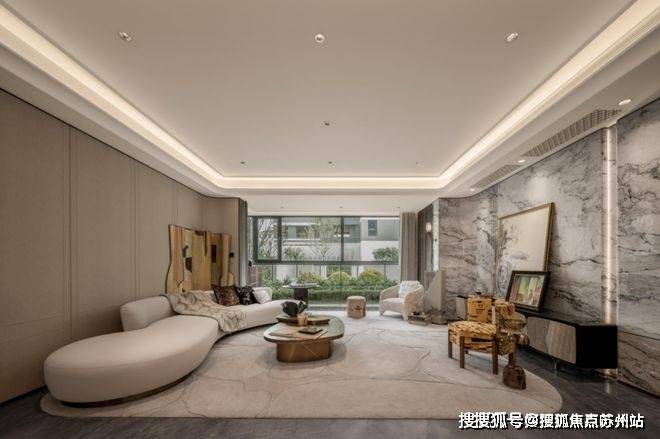 下沉式庭院则以土耳其进口老虎玉为基底,经匠人60天手工细细打磨;树龄超60年的福木「紫薇」,跨越万水千山从远方寻得,让每一次归家,都成为穿越艺术与时光之旅。