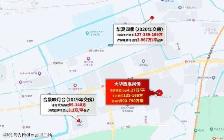 首先是新房:目前大华西溪风情周边还有3个可售项目,分别为刚刚官宣案名的建发招商元序,即将首开的保利天奕,以及最后一期尾房在售的滨江时舟里,分布如下: