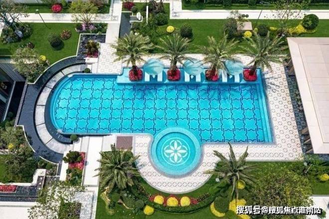 景观轴上,约280㎡的无界泳池,灵感来自希腊安缦酒店,是“浮屿花园”的画眼。