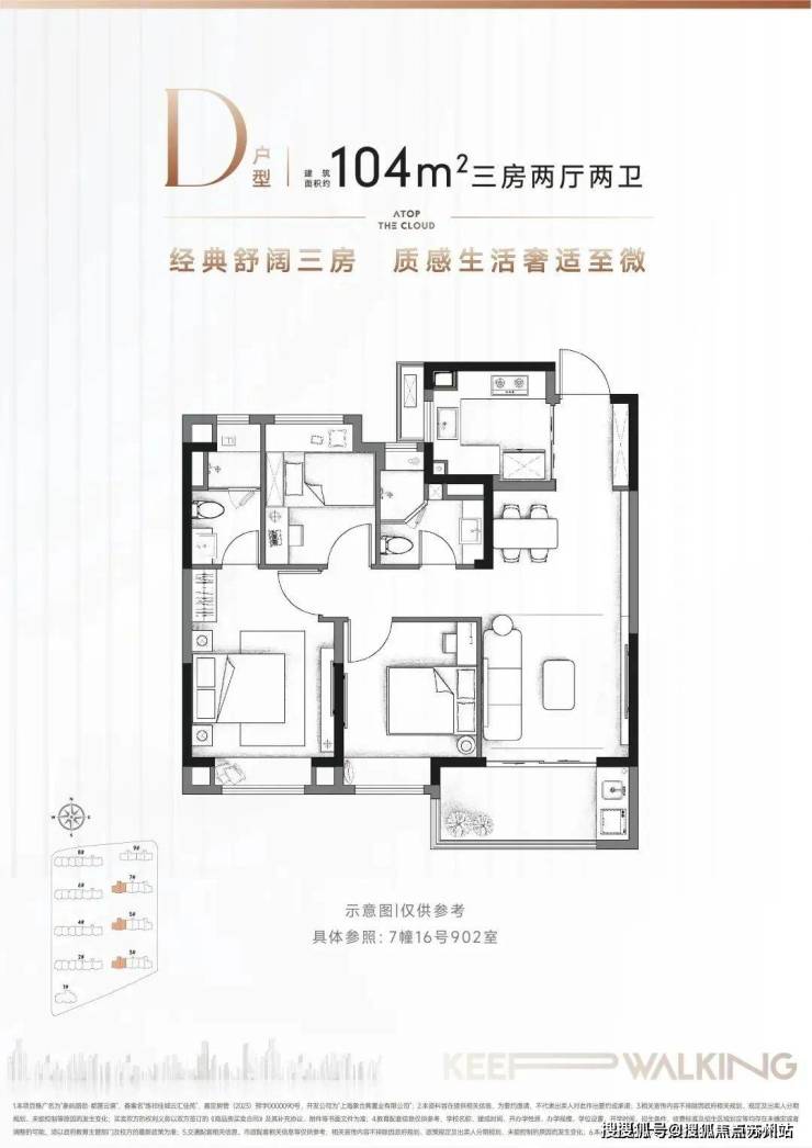 建面约104㎡3房2厅2卫▼