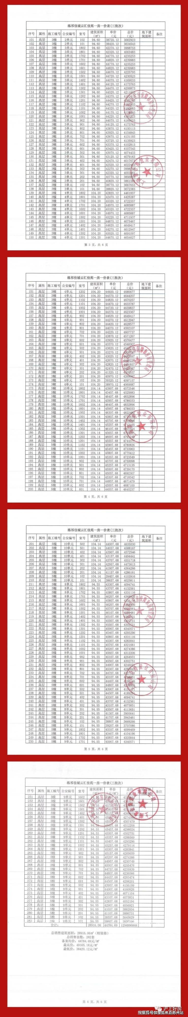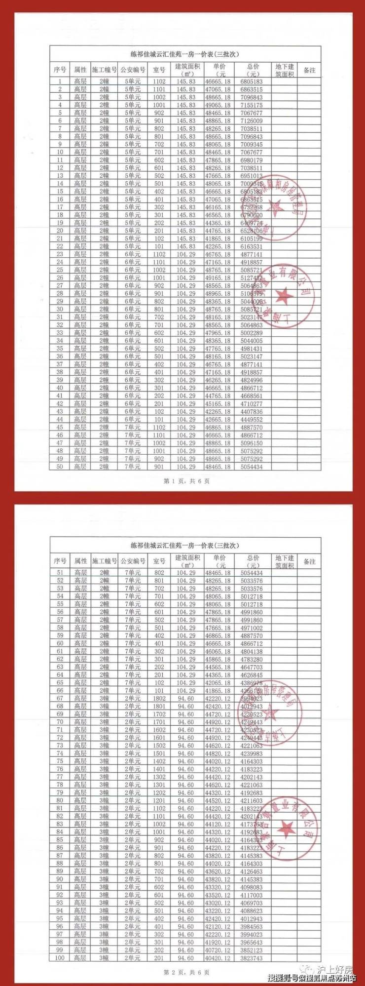附一房一价表: