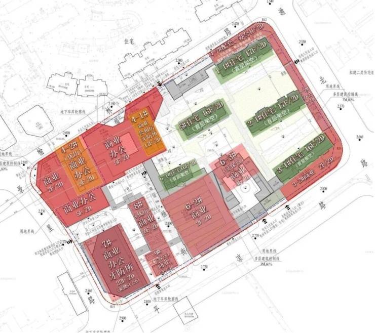 本次公示为 01E4-03地块(平凉街道8、9街坊),占地面积33189方,容积率3.26,总建面176334方,地上计容建面108196,地上不计容建面8704方,地下建面59434方。拟建5幢15~17F高层住宅及大规模商业建筑。