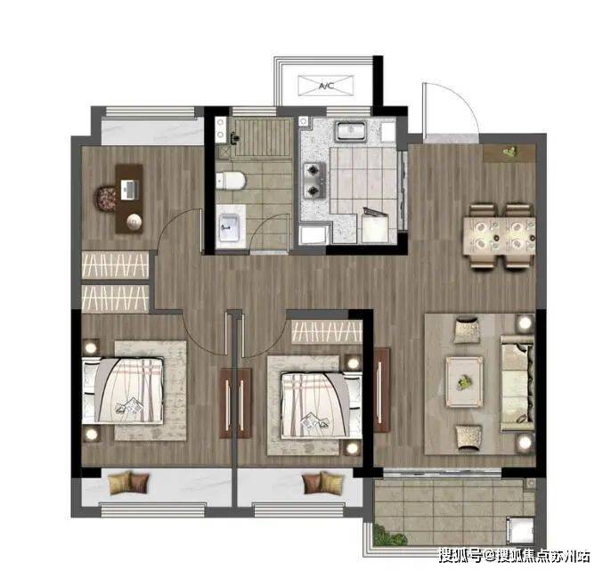 115户型,三室两厅两卫的户型设计,延伸不同家庭结构的需求。入户玄关,格局全明方正,动静分区,日常起居互不干扰,餐客一体的大进深奢阔空间,承载全家人的理想生活。一厅双卧,三开间朝南的大尺度采光,从客厅到主次卧,都能在大飘窗或是阳台前,一揽实景园林的诗意。