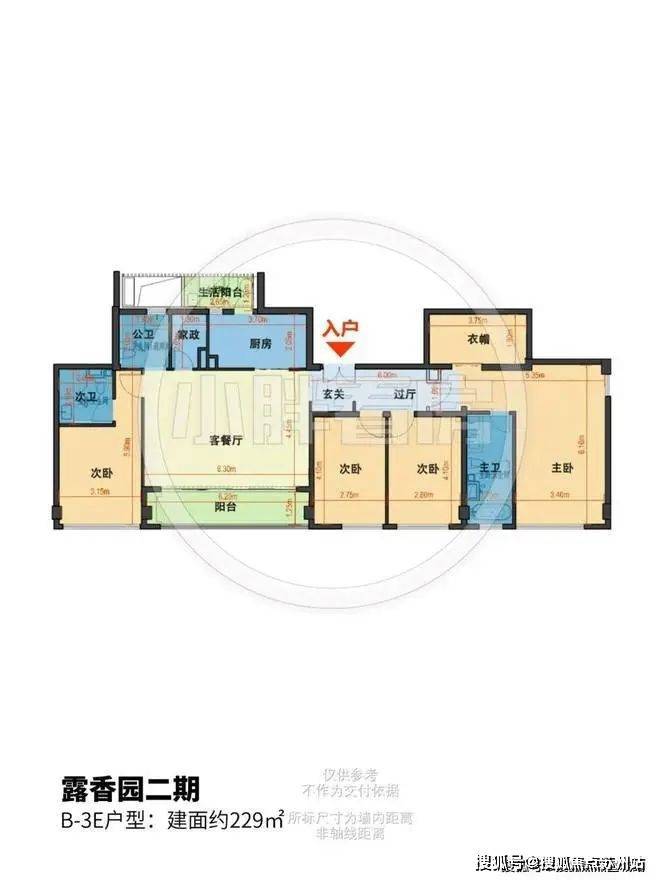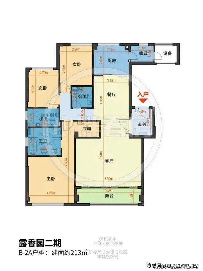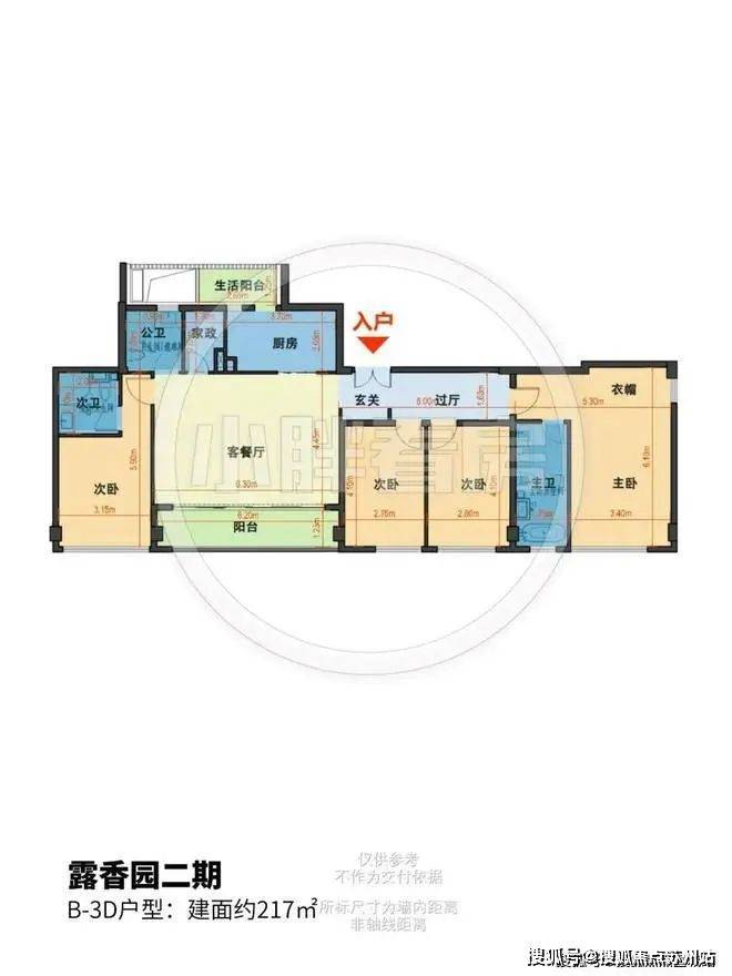 露香园二期售楼处电话☎400-8123-664✔✔✔露香园二期售楼处电话☎400-8123-664✔✔✔该户型为飞机户型,独立玄关入户,仪式感较强。横厅配置,两面宽超大阳台,增添社交休闲属性。四间卧室朝南,分别居于客餐厅左右两侧,其中主卧配置相对豪华,拥有较大衣帽间以及四件套酒店式卫生间,另外三间次卧尺寸合理也相对安静。厨房带有生活阳台,整体配置舒适宽敞,虽然不是南北通透,但南侧采光面较大,适合全龄段生活场景所需。