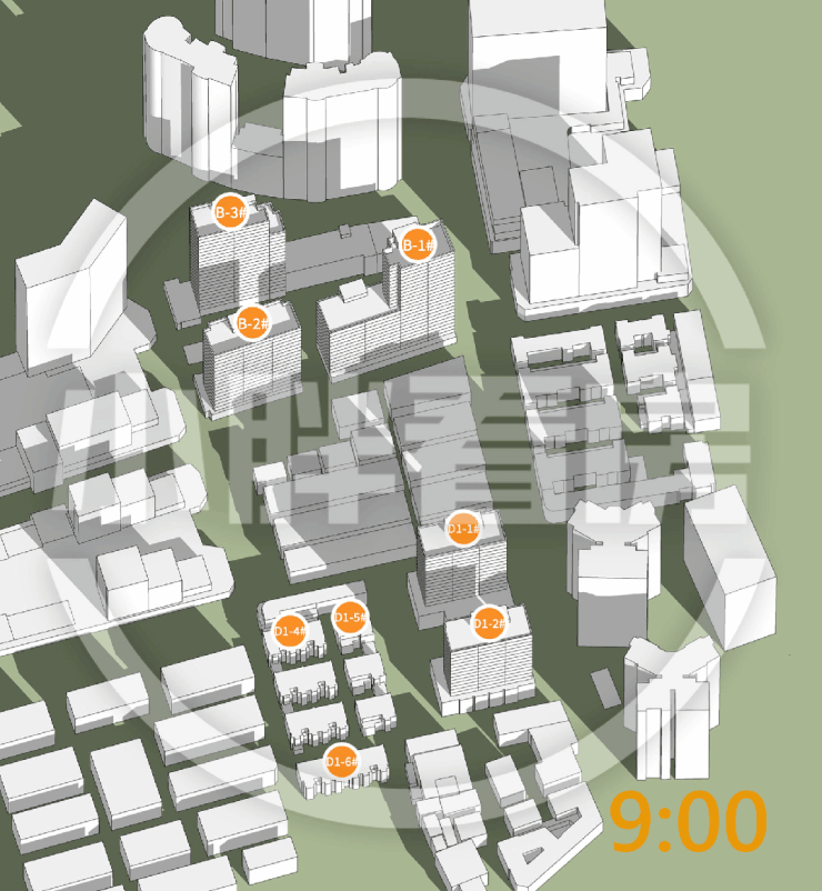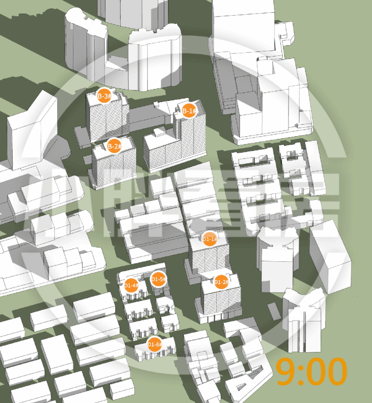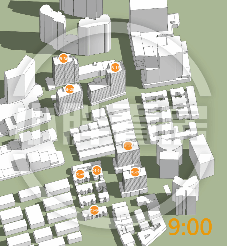 夏至(9-15时)在售楼栋日照时间和动图