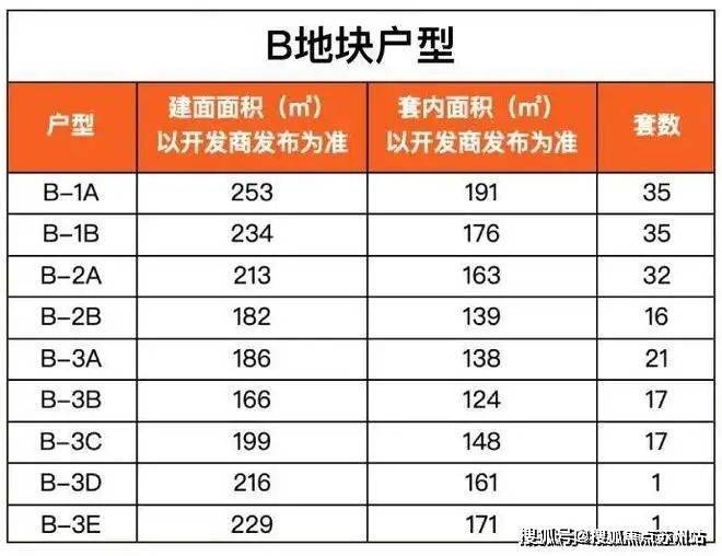 B地块各户型分布、各户型套数、得房率如下(过程稿,仅供参考):