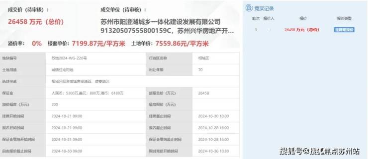 土拍详解2|阳澄湖城乡一体化和兴华房地产拿下北双湖Z26 号地块