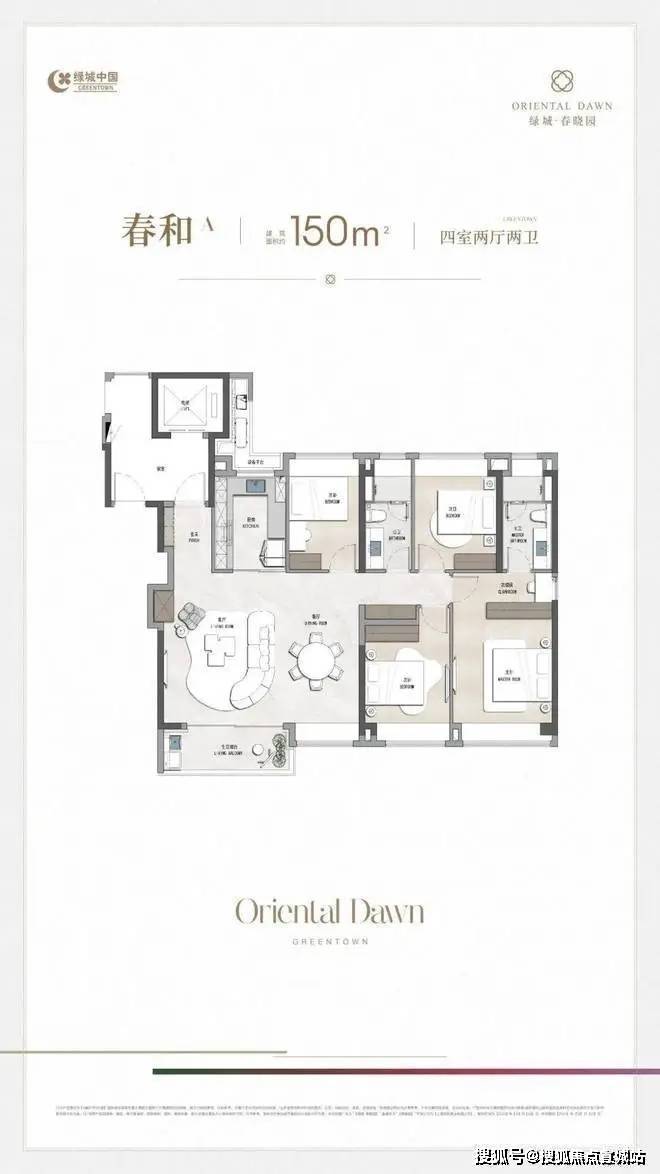 绿城·春晓园预约热线:400-8673-567【营销中心电话】「春和A丨 150㎡ 4房2厅2卫」横厅 两南两北