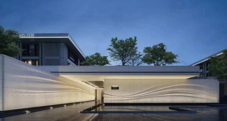 壹江臻邸亦摒弃昙花一现的潮流设计,以新经典风格打造跨越时间的作品。建筑立面溯源希腊柱式的古典秩序,注入现代设计语言,纵向柱式线条勾勒挺拔韵律,横向铝板舒展延伸,石材+铝板+超大玻璃的经典组合搭配竹节弧形仿石铝板,兼顾静谧与通透,形成极具辨识度的城市美学地标;