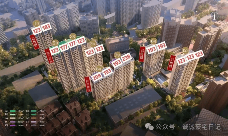 项目推出建面约123-238㎡多元化户型,覆盖三房至四房,满足不同家庭需求.建面约123㎡三房采用飞机式布局,一镜到底的LDKB长厅,尽显隐贵风范;建面约177㎡四房拥有6重采光面,室室皆阳,通透舒适;建面约193㎡户型更是达到豪宅大尺度,私家电梯厅附赠空间、嘉格纳厨电五件套、大面积木饰面装饰,约50㎡客餐厨阳台空间、超8米飘窗,空间感堪比市面上230+㎡户型.