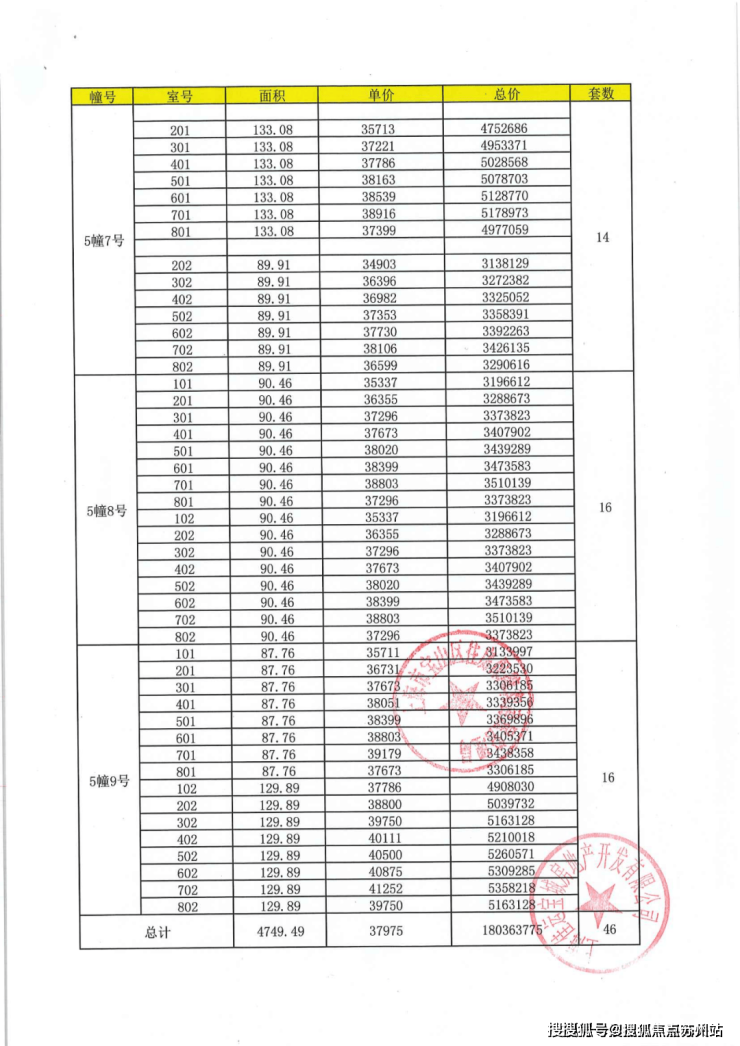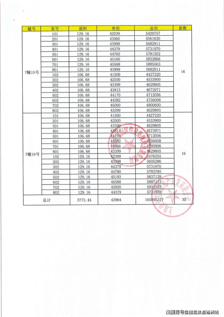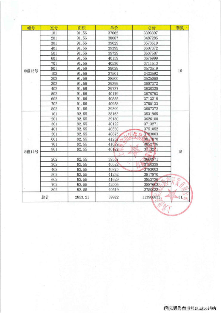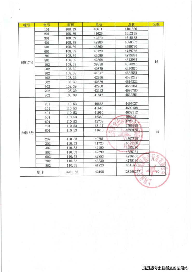 项目一房一价表