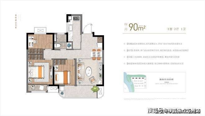 2、(方正)户型方正,高得房率,超12米三开间朝南,动静分区,流畅居家动线;