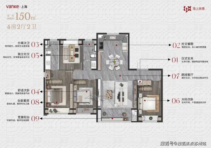 万科集团以其多元业务开发能力海上映象售楼处电话:400-8228-664☎【预约热线】,注重与城市一体化开发,通过一座景观桥(规划中)消融社区边界,将原本孤立的社区与南侧银河滨水活力空间、印象城MEGA商业及周边广富林城市文脉连接,合力打造为区域商业+滨水+住区综合业态新地标。Vanke Group, with its diversified business development capability, pays attention to the integrated development with the city, and melts the community boundary through a landscape bridge (under planning), connecting the originally isolated community with the vibrant space on the south side of Yinhe Waterfront, MEGA business in Impression City and the surrounding Guangfulin city context, and jointly creating a new landmark of regional business+waterfront+residential complex.
