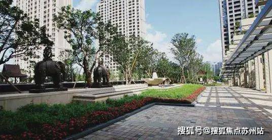 内部的景观,品尊国际也以现代东南亚景观为主,在中轴线上设置了大量的景观绿植以及雕塑、工艺灯笼、雕饰景墙等。