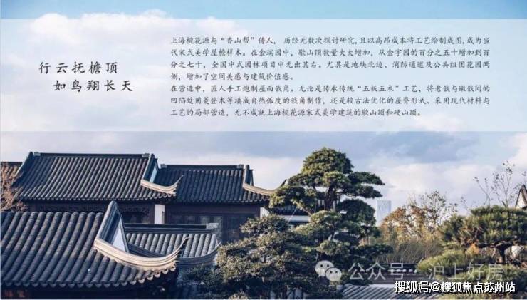 同时,建筑采用宋代宫殿,建筑出檐宽广,檐下增加斗拱、镂空雕花、甘蔗脊、阑额等元素,约2/3宅园设置入户连廊,为全国之最,雅贵造极。