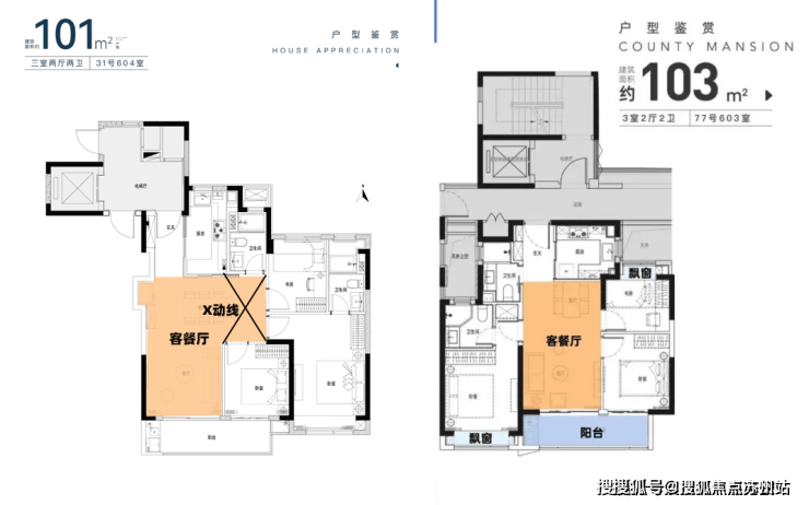 再来看看本次101㎡户型与大一期103㎡户型的对比: