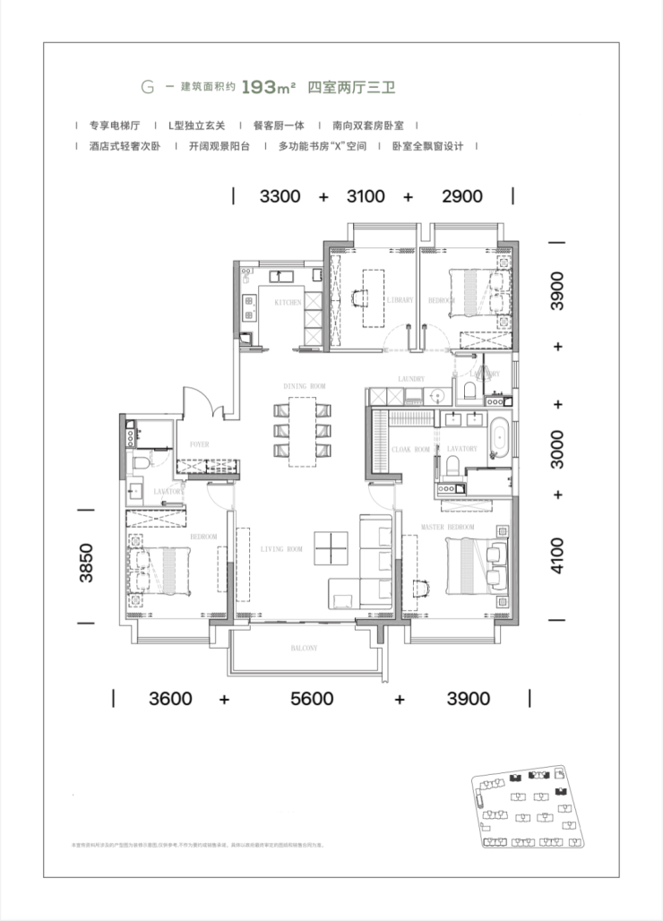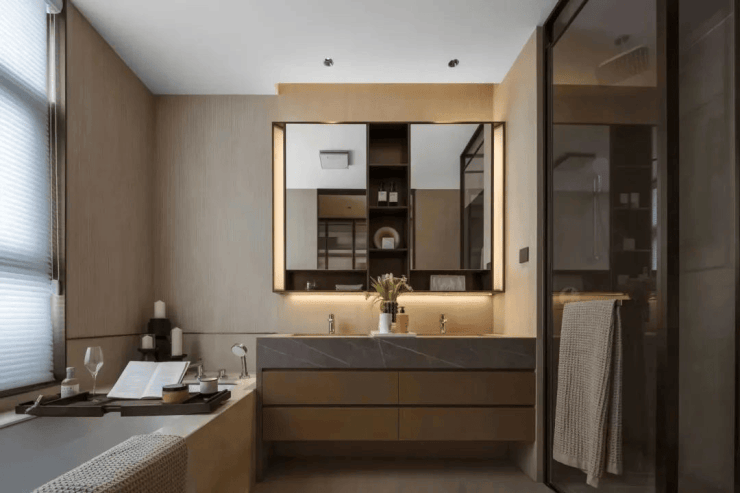 日常生活的质感上,采用国际一线大牌奢装,带给居者与众不同的体验感。瑞士顶级卫浴品牌Laufen劳芬、德国高端洁具巨头Dornbracht当代、德国知名品牌美诺等等,还有定制衣柜(200㎡以上户型),新风、地暖、中央空调都也是世界知名品牌。