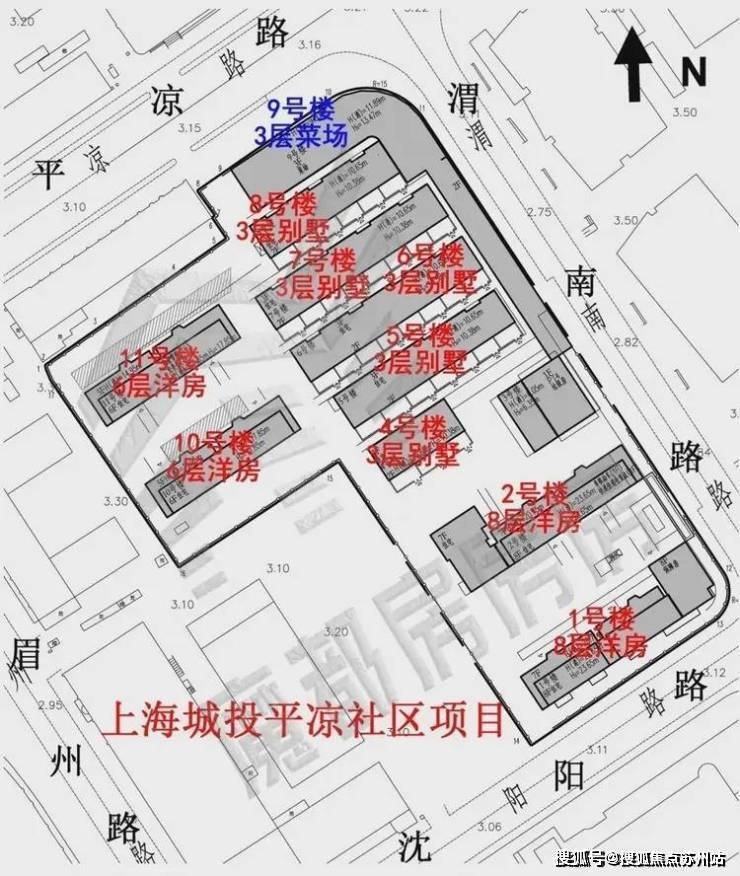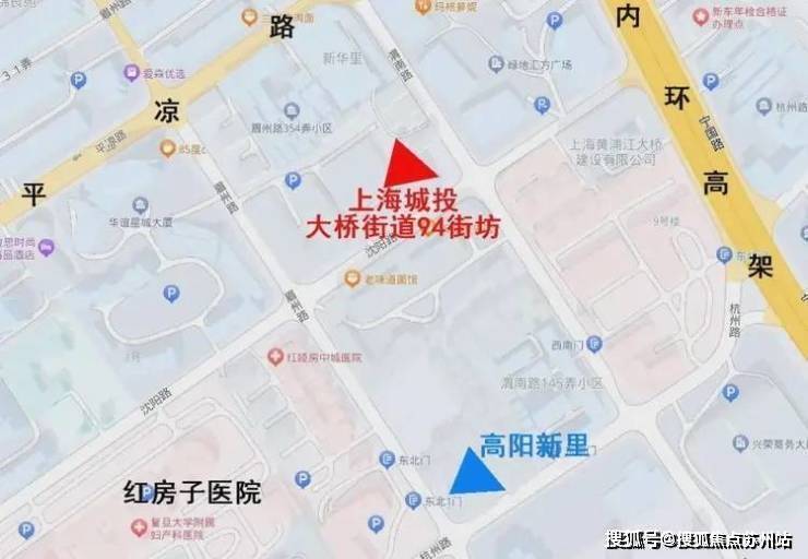 「兴华里」(大桥街道94街坊)地块四至范围, 东至渭南路,南至沈阳路,西至02F1-02、02F1-03地块,北至平凉路。项目距离上海城投上一个板块内住宅项目高阳新里仅一个路口街区之隔,直线距离200米左右。