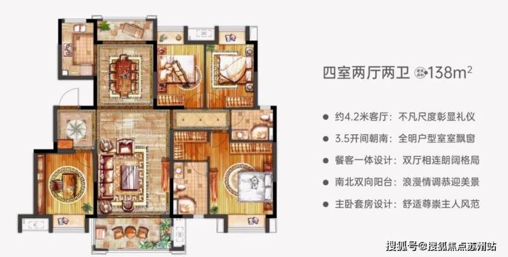 建面约138-142m²奢阔四房,彰显尊贵气度