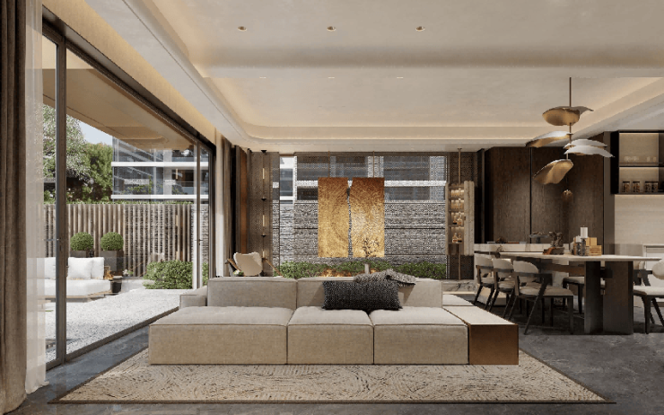 比如,家家都有私属的庭院、空中花园或大露台,真正实现“层层有园林,户户有庭院”。客厅往往还是挑空设计,加上超大的落地窗,采光和视野好到爆。