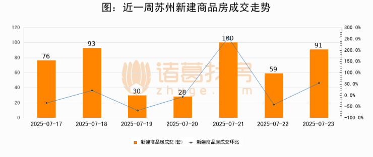 【苏州成交日报】07月23日新房成交91套、二手房271套;涨价房源14套