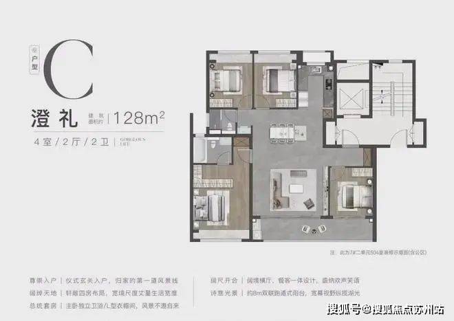 约91-115-128平三大户型,在园区核心大户型为主的背景下,成为为数不多的小面积配置,为首置首改提供了低门槛上车机会。