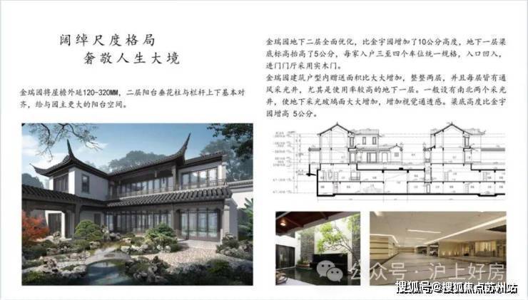 同时,建筑采用宋代宫殿,建筑出檐宽广,檐下增加斗拱、镂空雕花、甘蔗脊、阑额等元素,约2/3宅园设置入户连廊,为全国之最,雅贵造极。