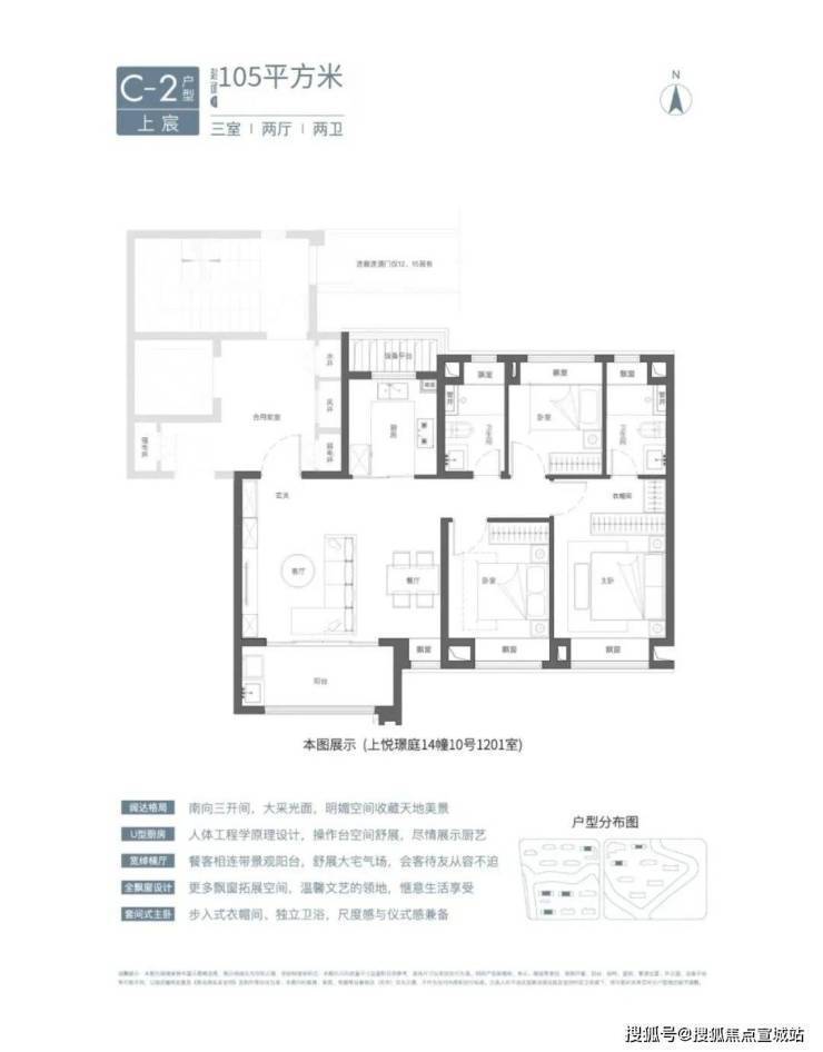 「国贸虹桥璟上」建面约105㎡3房2卫有两种风格(宽厅、竖厅),尤其是宽厅户型,设计格外惊艳。
