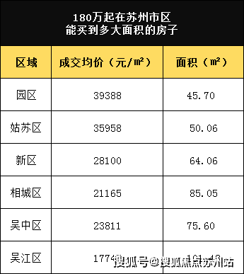 同样的预算在园区、姑苏区、新区只能买45-64㎡的房子,即使放在成交均价最低的吴江区,也只能买到101㎡的房子。