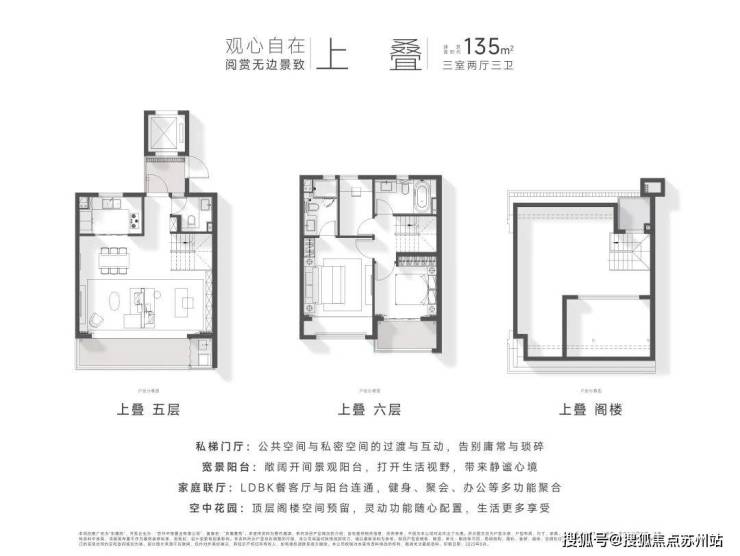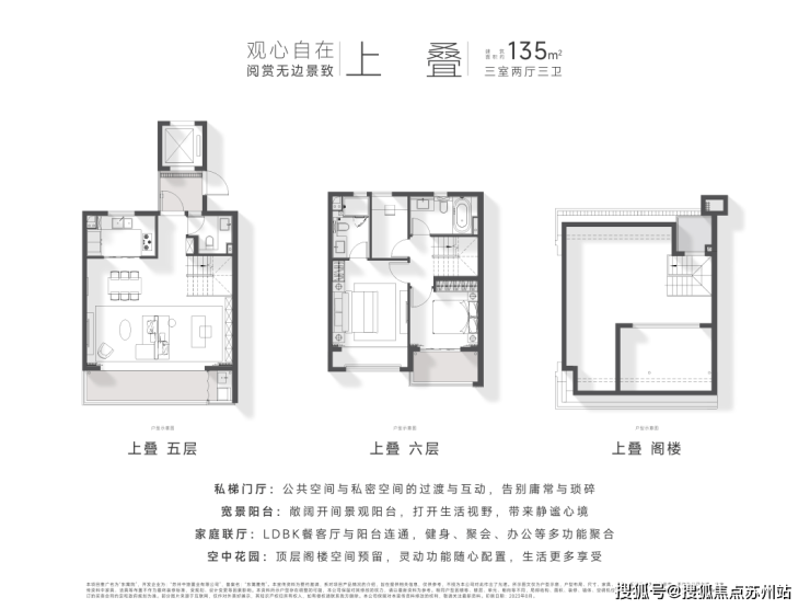产品户型建面约118-173㎡,下叠及中叠均自带院子,上叠配有阁楼露台,全南向,并且做到了独门、独院、独梯,极尽尊贵。