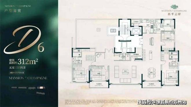 建面约312-315㎡5房3厅4卫户型