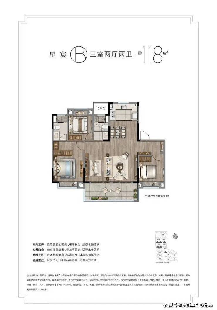 在售洋房户型:98㎡(3房2厅2卫),118㎡(3房2厅2卫)