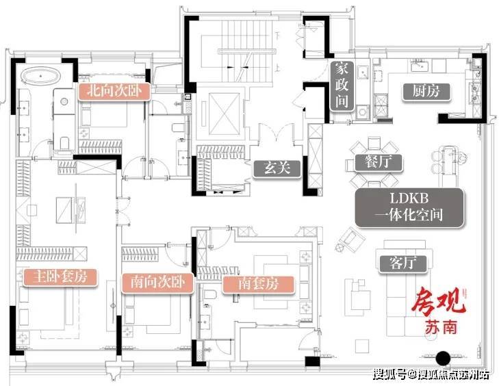 三卧朝南设计,南向双套房设计
