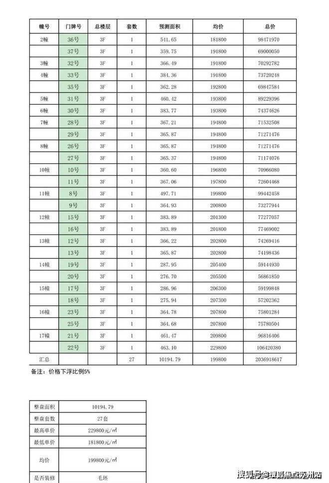 别墅一房一价表: