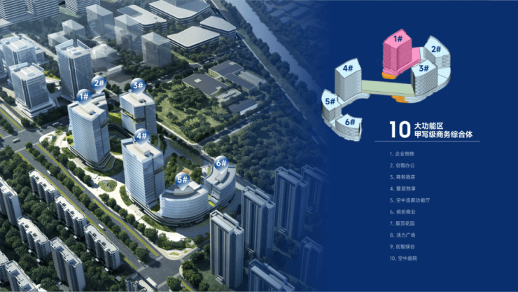 6栋生态建筑,以莫比乌斯环为灵感串联,打造通透交互空间,流线型外观搭配玻璃幕墙,象征着入驻企业未来的生产生意,生生不息。园区规划十大功能区,包括品质办公、商务酒店、创意商业、屋顶花园等,满足商务、餐饮、健身、社交等一应需求,实现功能有机化。