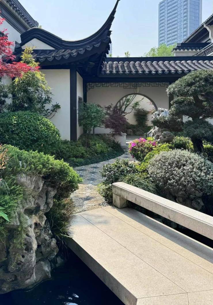 杭州城之前的合院盘,一般只有一个中心庭院。但理想荷院东区、西区各有2个中心庭院。芝花海棠的花街铺地上,老树婆娑、山石嶙峋、叠水飞瀑,整个园区单太湖石就用了约1100吨。