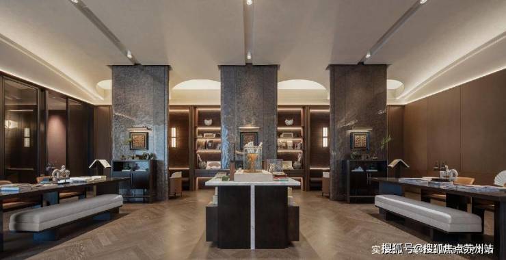 而下沉式会所空间,同样被赋予美学的灵魂。书吧的光影变幻、泳池的慵懒风情……都是承载仪式感与社群温度的审美现场,激发着人与人之间的互动与灵感。延伸至室内,苏州首席法式样板内,无论是大露台上的法式优雅,还是室内材质与光线的细腻处理,皆在可触摸的范围内,将艺术内化为稳定而高级的日常氛围。