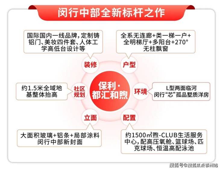 保利·都汇和煦位于上海市**虹口区四川北路板块**,具体在虹口足球场与鲁迅公园北侧。项目由保利发展开发,为住宅、商业、办公的综合体。住宅部分主打建面约**99-194平方米的高层公寓**,装标交付。其核心卖点围绕“**内环内核心地段**”、“**保利高端产品系**”和“**稀缺新盘**”展开。