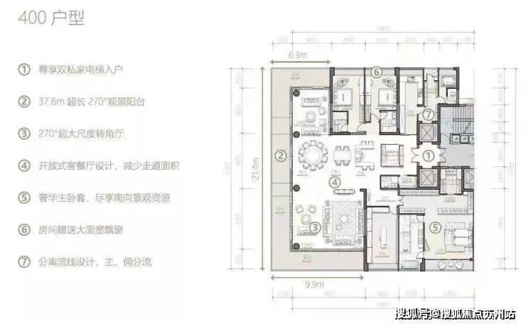 附赠面积有内外庭院、阳台、露台