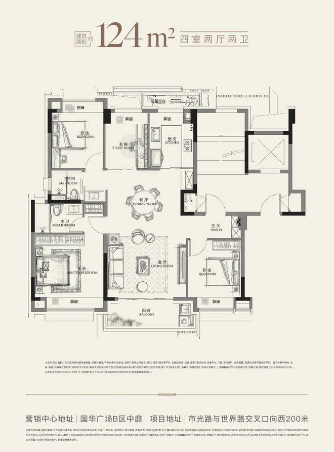洋房124㎡5层电梯房:一步到位改善四房