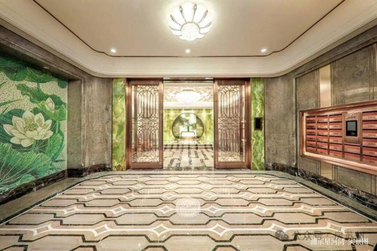 星河湾独有的反复推敲择定的双开大门,以108道工序,手工打造9个月。在吊顶工艺上选用燕尾榫卯拼接,L 角整板裁切。水刀工艺,为每一块大理石无缝匠心拼接。