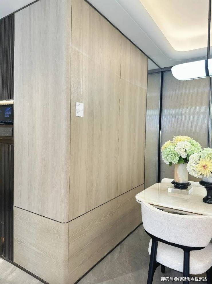 这个入户公区的背景墙也是交付标准,体现了品质力的同时也更具家的仪式感。从公区的高质感里,就已感受到了项目的高品质,同时更加衍生了对室内空间的高期待。