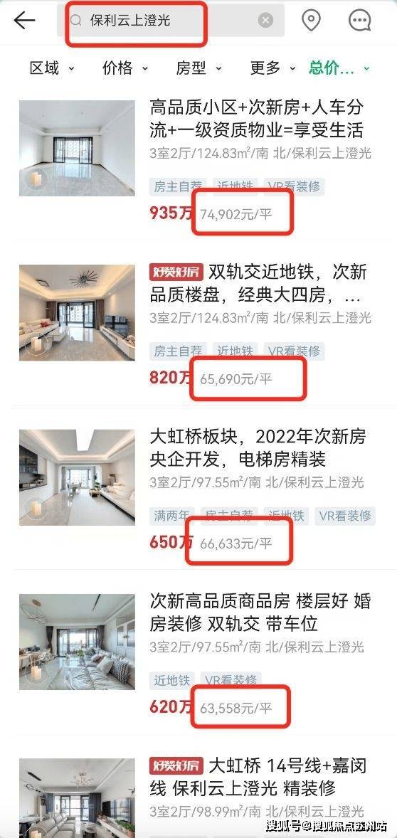 我们拿离项目最近的,距离只有几百米的保利云上澄光为例,同样也是出自保利之手,现在二手挂牌价格已达到6.5万/㎡左右!