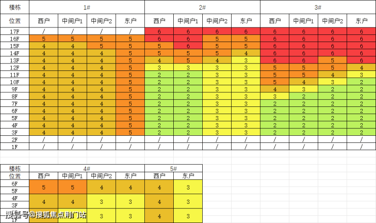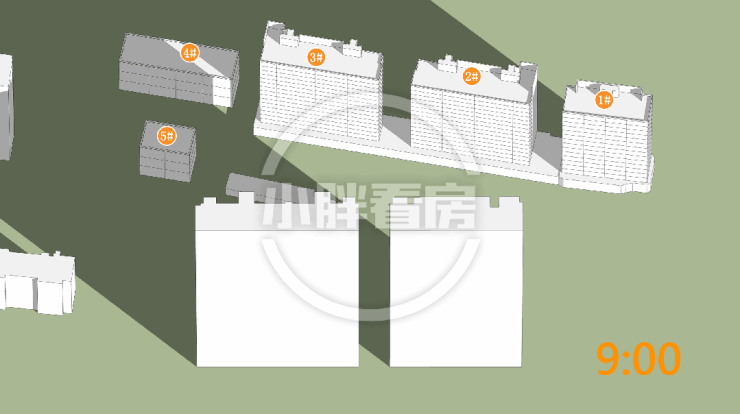 冬季:1#2#3#中低层受遮挡。4#5#低层受遮挡。就具体遮挡时间而言,1#主要在下午受南部住宅遮挡。2#主要在中午和下午受南部住宅遮挡。3#除早晨和傍晚外其余时间段均受遮挡。4#主要在上午,中午和傍晚受5#和南部住宅遮挡。5#主要在上午受南部住宅遮挡。