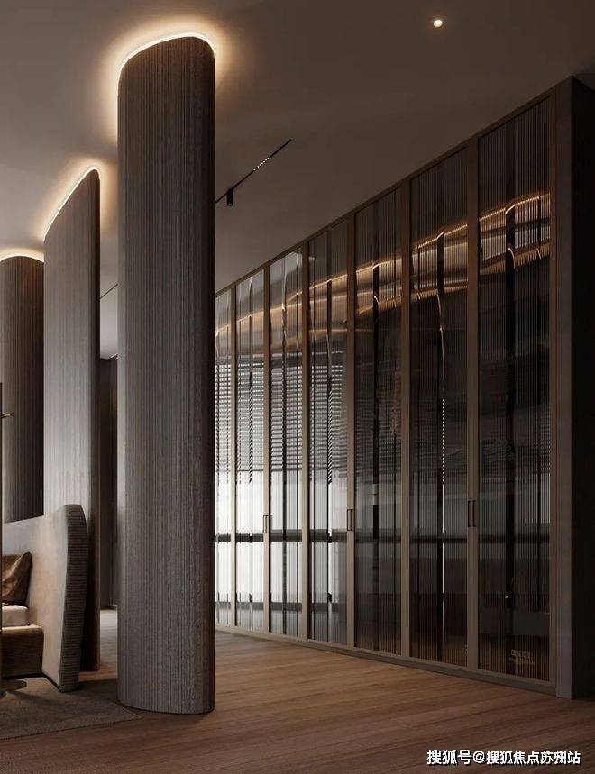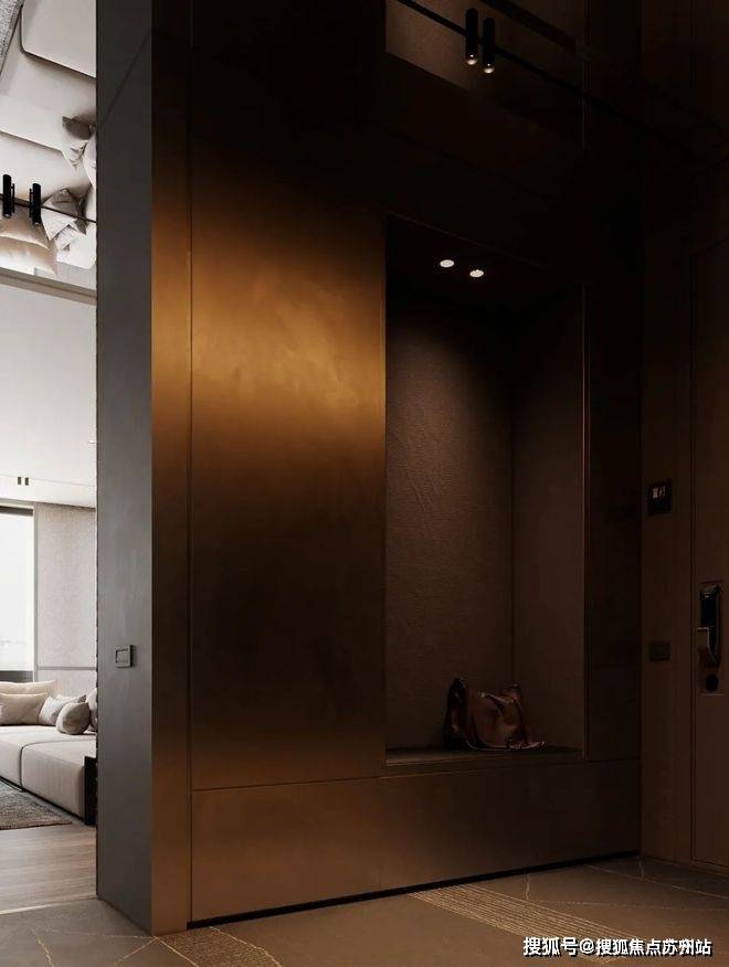 深色的玄关加上深灰色的墙面,让整个空间变得神秘又迷人。暗黄色的灯光给整个空间带来一丝神秘,客厅的视野完全被落地窗全部打开,整个空间显得通透大气。圣和静安公馆售楼处电话:400-902-3966